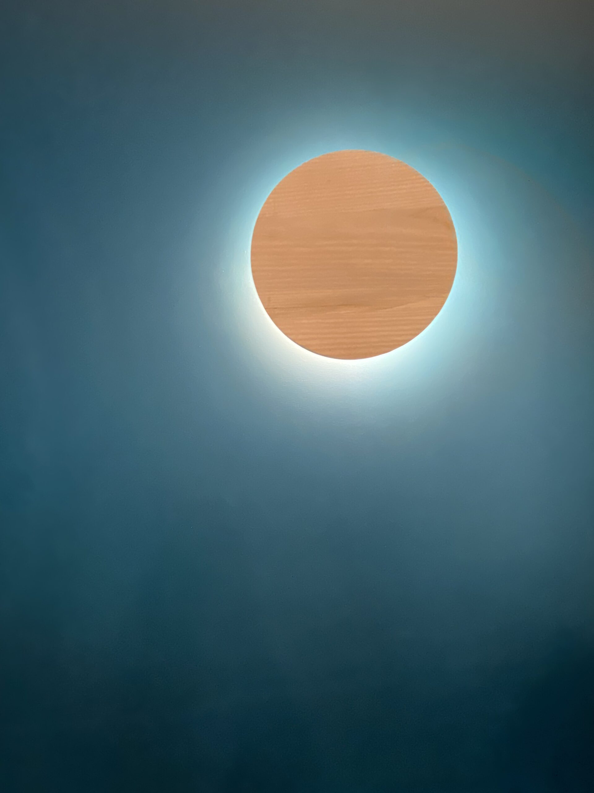 Des lignes simples, un dégradé de peinture bleue et une touche de bois pour un salon chaleureux, doux et accueillant.