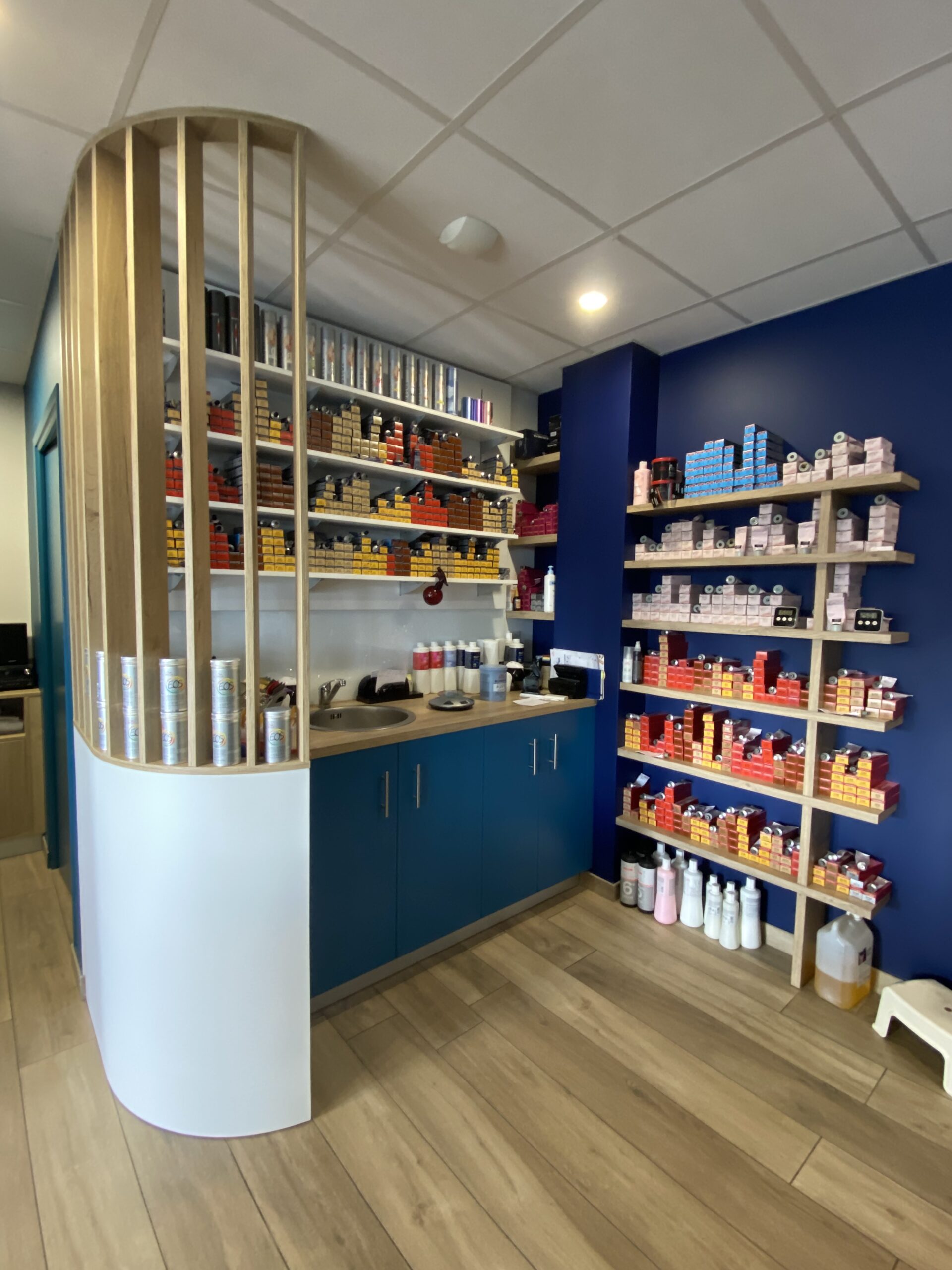 Chez Sweely, nous croyons que chaque commerce, chaque point de contact, doit raconter une histoire, celle de la marque, de ses valeurs, de sa relation avec ses clients. Avec ce projet Coiffure Passion, nous avons mis notre savoir-faire au service de la coiffure, en combinant design global, mobilier sur-mesure et ambiance soignée.