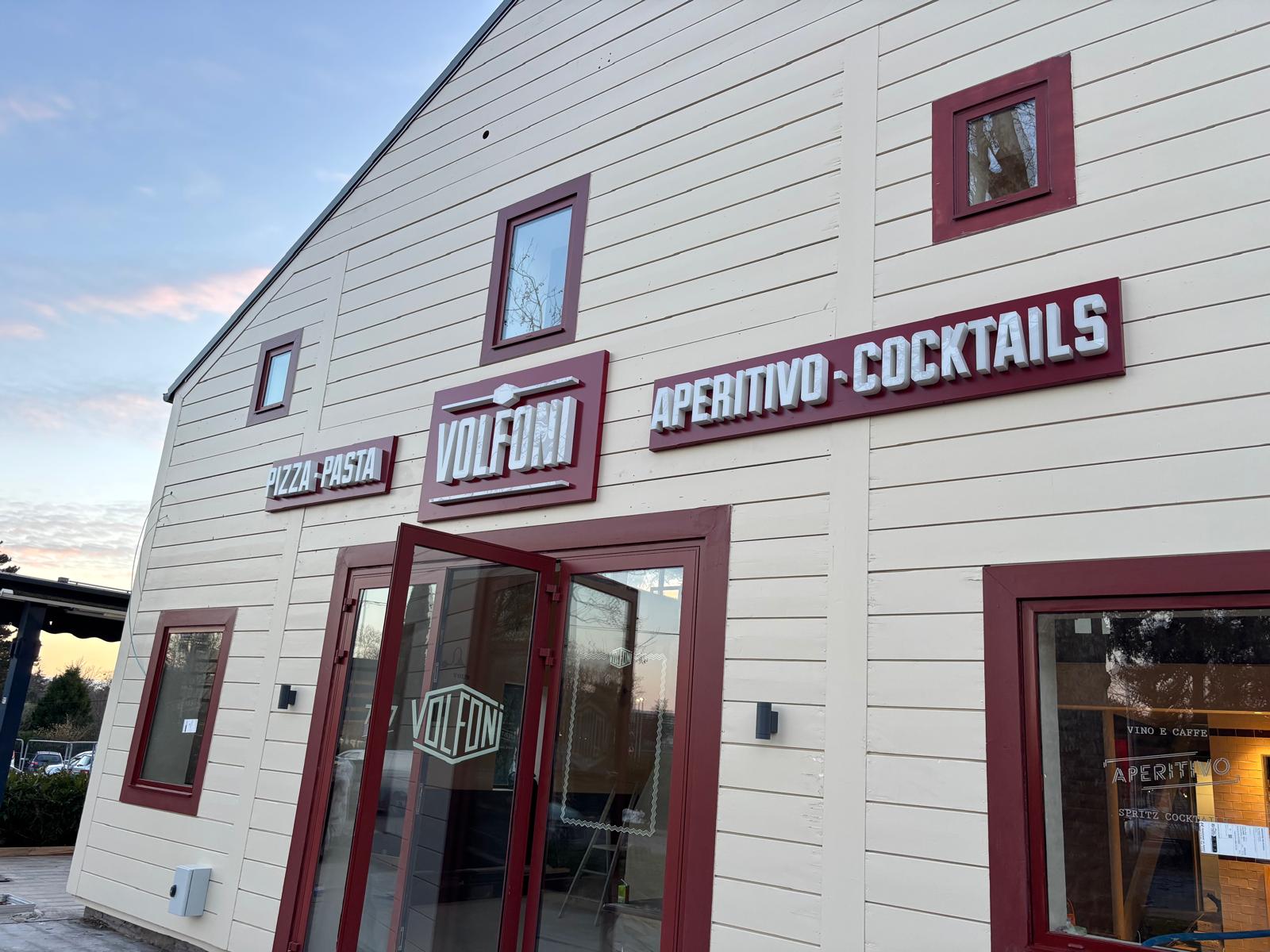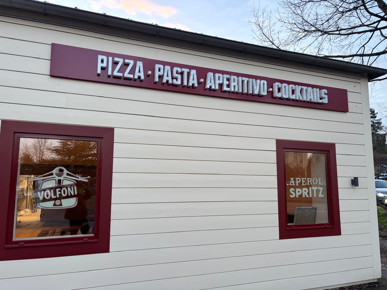Pour le projet Volfoni à Ecully, nous avons fabriqué et posé l’ensemble de la signalétique extérieure du restaurant.