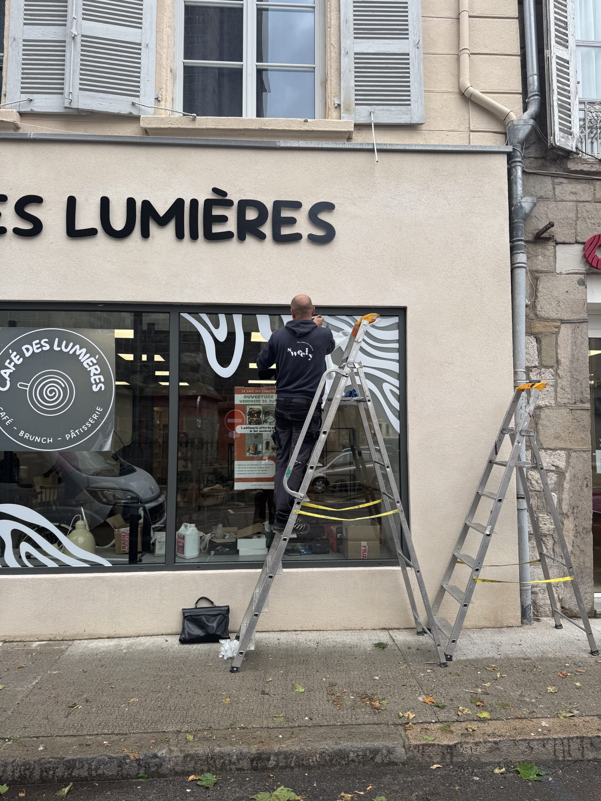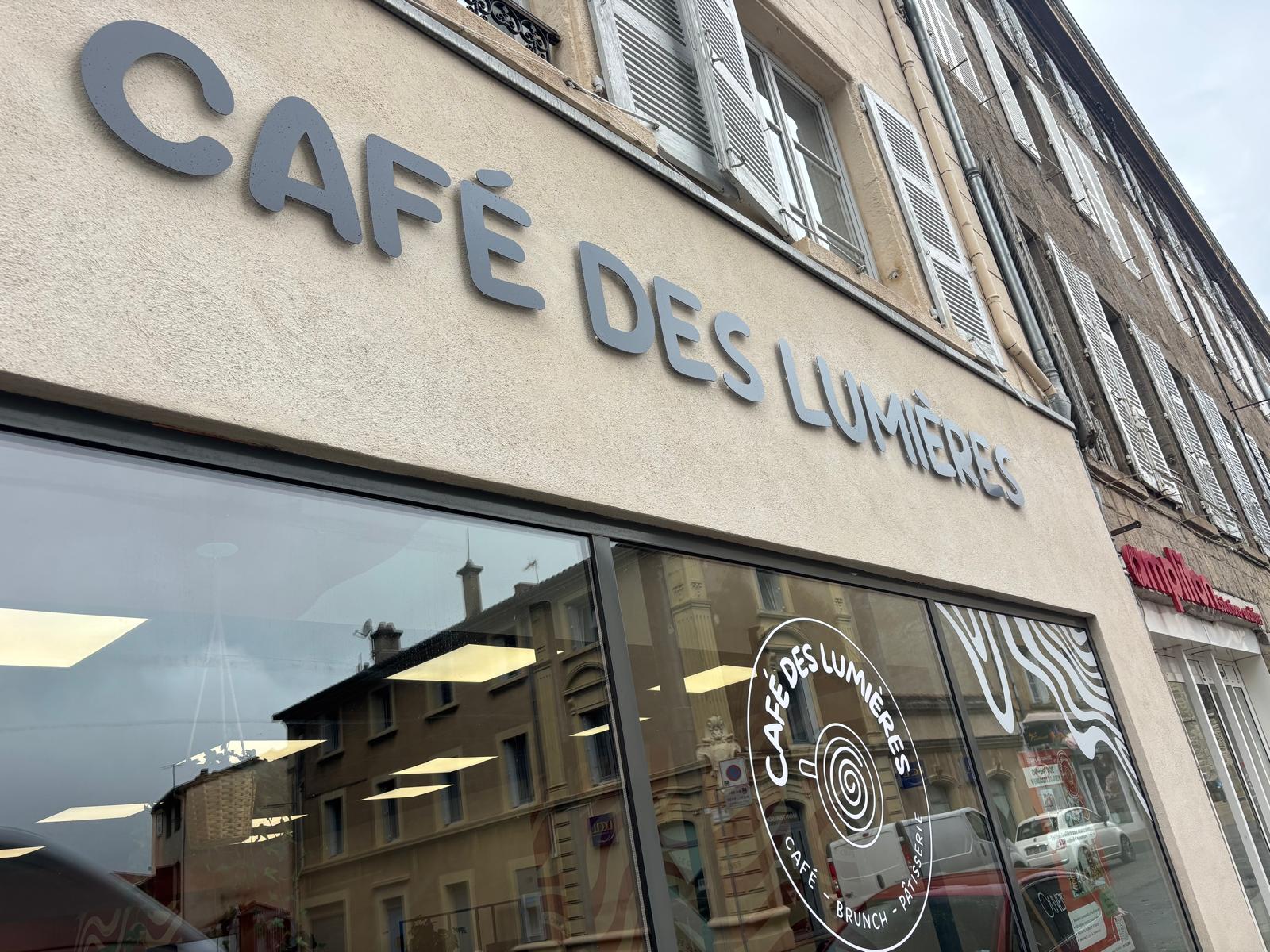 Le Café des Lumières a fait appel à nos services pour l’accompagner dans l’ouverture de son établissement. Il nous a fait confiance pour travailler sur l’aménagement intérieur, mais également sur sa signalétique de devanture.