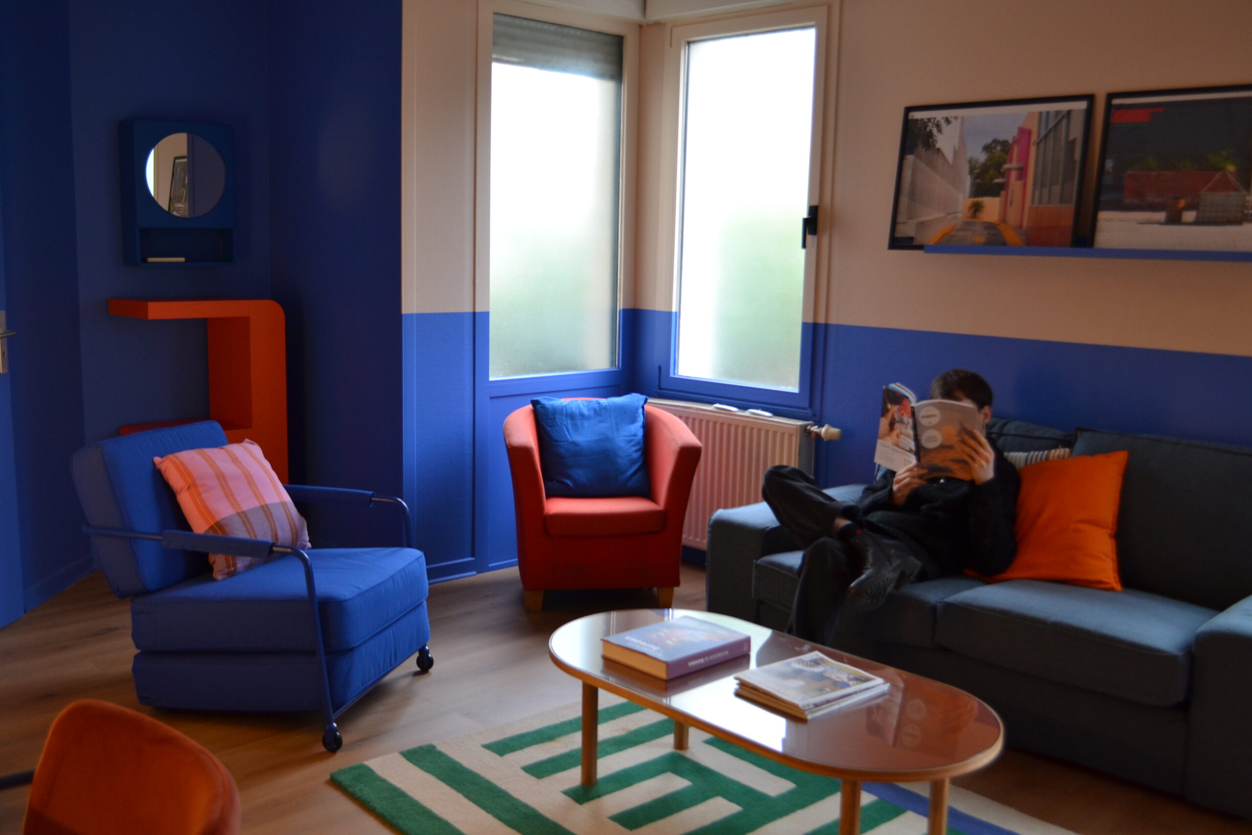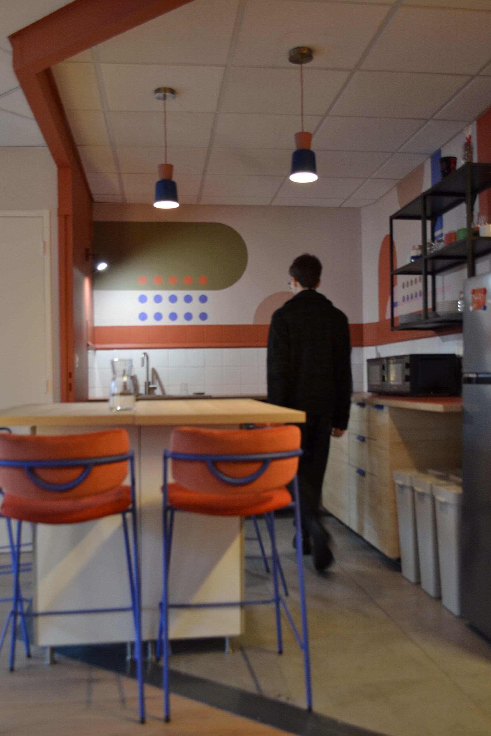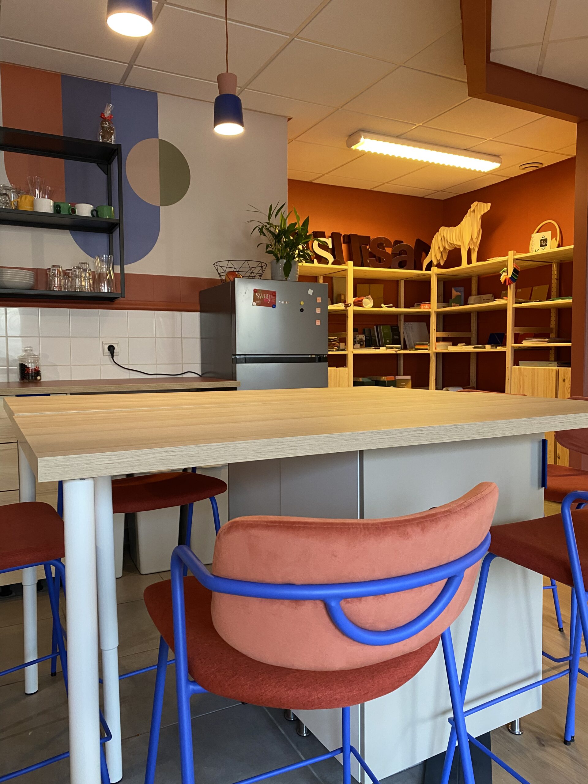 Nous avions envie de créer une agence qui nous ressemble, qui présente nos différentes compétences telles que l’aménagement intérieur, la signalétique et le graphisme. Pour cela, nous avons pensé un lieu chaleureux où la couleur est présente comme un message dynamique. Chaque élément a été pensé pour créer un espace harmonieux : de la couleur au choix du mobilier, en passant par le design de nos tapisseries sur-mesure avec des formes géométriques, rien n’a été laissé au hasard !